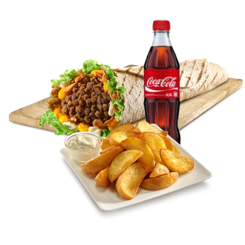 with fresh red onions, wedges, beef, bacon and barbecue sauce